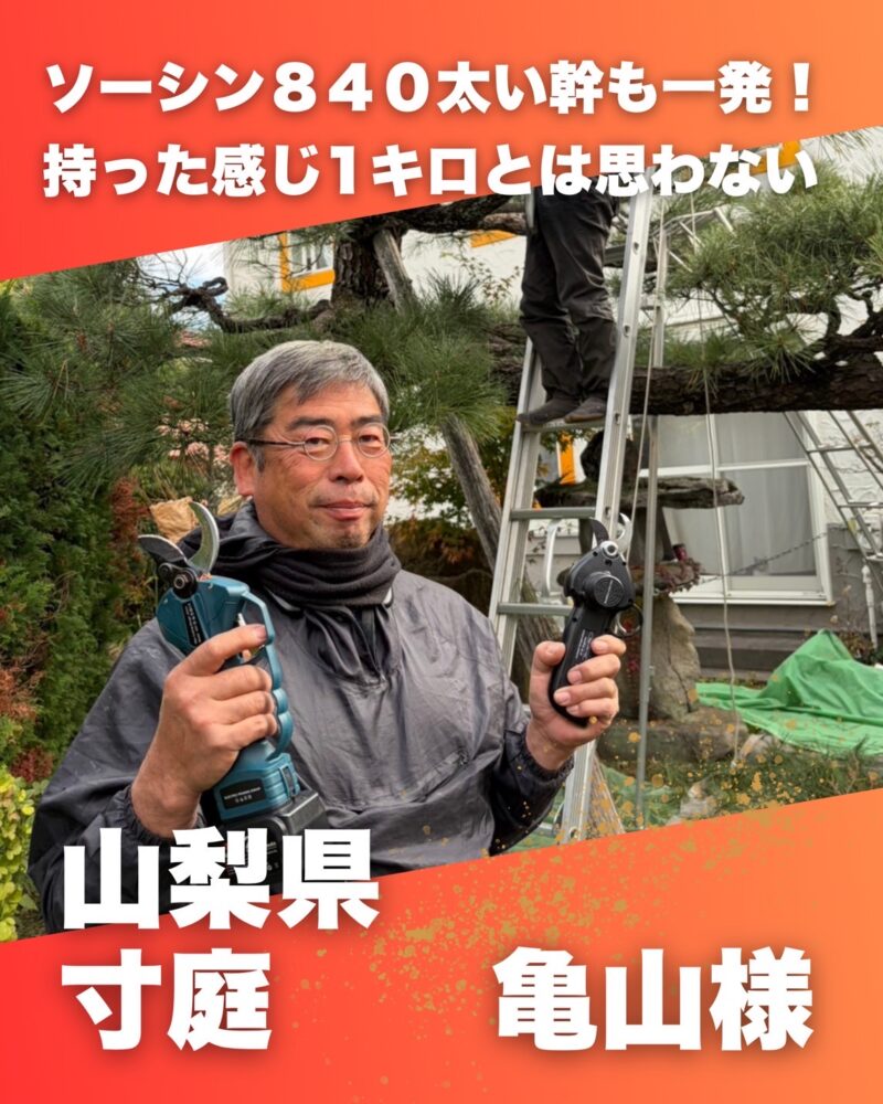 電動剪定ハサミ・ソーシンWZ01レビュー・山梨県 寸庭 亀山様