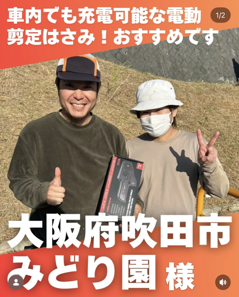 電動剪定ハサミ専門メーカー・ソーシンテクノロジージャパンです。ソーシンWZ01のレビューです。大阪府吹田市 みどり園 工藤さまが「ソーシンWZ01」を使用して頂きました。WZ01はホルスターが装着していますので、腰ベルトに簡単に取り付けられます。軽量で持ち運びに便利、タイプCで充電も可能なので車でも充電が可能です。剪定作業には必須のアイテムです。是非お勧めの商品です。