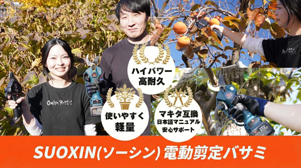 2025年4月に日本法人を設立致しました。ソーシンテクノロジージャパンです。私達の本社・ソーシンテクノロジー社は中国浙江省に本社・工場を構えております。電動剪定ハサミ専門メーカーです。日本法人は2025年4月に設立しましした。2025年11月28日 Amazonにて、ソーシンWZ01、最軽量600gを発売。ソーシン840・最強25 Vバッテリー装着・切断径40㎜の2製品を発売させて頂きました。これから日本市場にてお客様にクオリティーの高い製品を提供させて頂きます。よろしくお願いします。