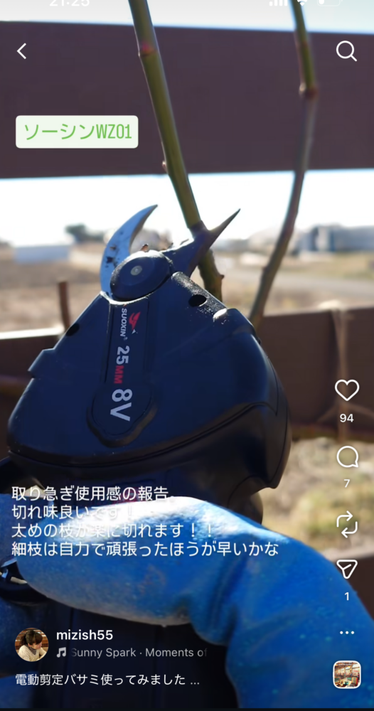 電動剪定ハサミ ソーシンWZ01 レビュー 群馬県 ローズガーデン・カネコ様