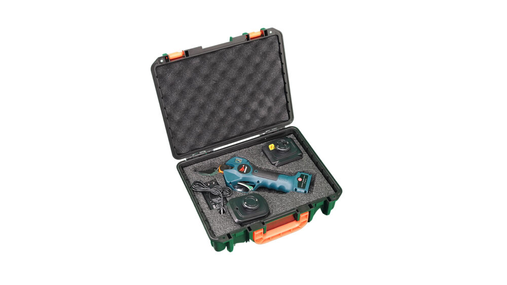 本製品は、25Vの大容量リチウムイオンバッテリーが付属しているため、効率的かつ継続的な剪定作業が可能です。また、国内バッテリー互換アダプターも付属しているため、国内製品にも対応しています。
