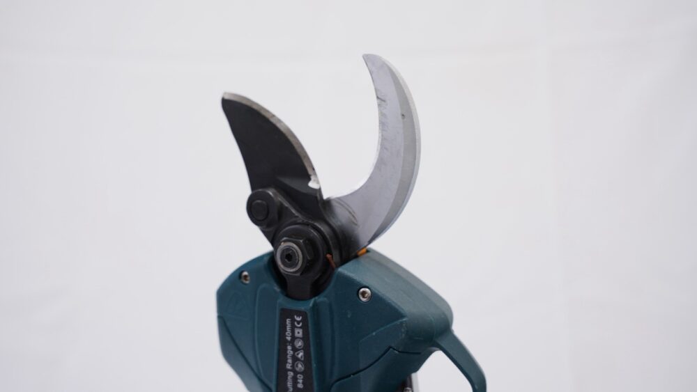 本製品は、強力なパワーを備えており、最大切断径は40㎜に達します。そのため、特に太い枝落としの作業効率が大幅に向上します。誤作動防止のため、電源をオン後、電子音が鳴り、電源ボタンが点灯すると、待機モードになります。この状態で引き金を2回すばやく引くことで刃が最大開き角度40㎜になる仕組みです。これにより、意図せず引き金に触れて刃が開閉してしまうのを防ぎます。また、引き金を3秒引くと、電子音が鳴り、刃の開き角度を30㎜から40㎜の間で切り替えることができます。